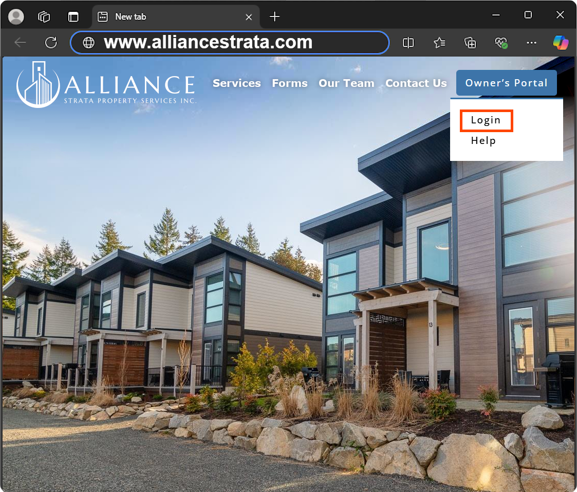 Only owners in Strata’s that have been onboarded to OneLink may create an Owner’s Portal Account. If you are unsure if your Strata has been onboarded, reach out to Alliance Strata Property Services.