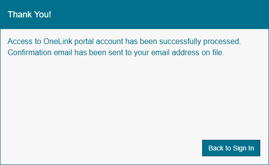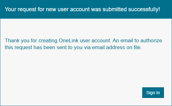 This email includes a verification link to complete OneLink account registration and an auto-generated password that will be used to login to the OneLink account once the account has been verified.